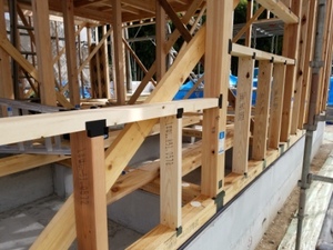 土台・柱・梁と接する部分には『制震テープ』が貼られています