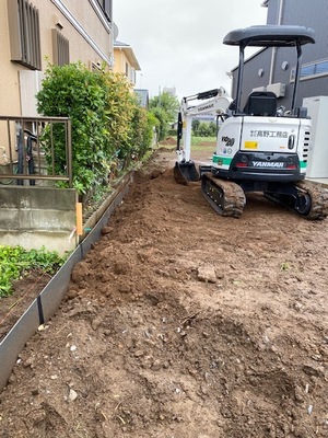 本日は、つくば市H様邸にて外構工事の