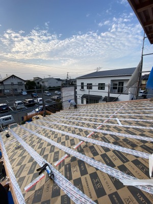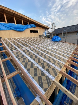 のぼり梁屋根パネル取り付けをおこないました。