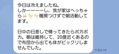 昨日の朝、土浦市で新築させていただきました平屋のお家のオーナー様からLINEが届きました!