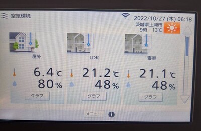 弊社ではすべてのお家に温湿度計を設置させていただき、外気温・LDK・寝室・脱衣室+αの温湿度を測定しています。