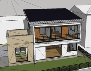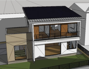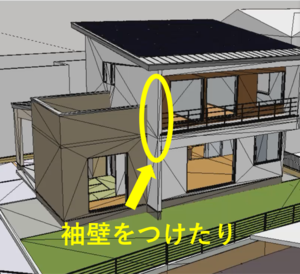 例えば、庇(ひさし)とか袖壁(そでかべ)をつけてあげると、夏の西日が家に入りにくくなります。