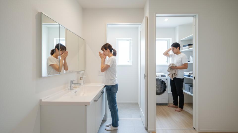 洗面所と脱衣所を分けることの大きなメリットは、家族がそれぞれの空間を気兼ねなく利用できる点です。