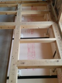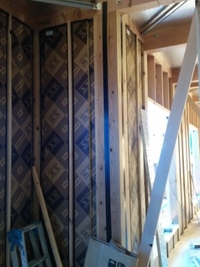 外壁側に50ミリ厚の断熱材を増し張りする分、下地が必要になる等の納まりが複雑になっていました(写真左)