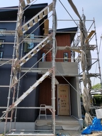 スパンサイディングの外壁張り、レッドシダーの外壁、塗り壁が終わりました