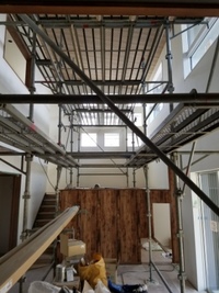 今日は照明器具も搬入になったので、照明設置も始まります。