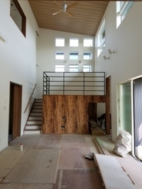 今日のK様邸は吹抜け部の建具設置と養生剥がしでした。