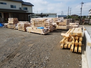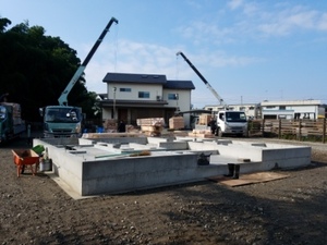 プレカット材搬入+土台敷き_つくば市自社モデル