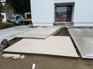 今日は型枠の撤去とアプローチ部分のタイル施工です。