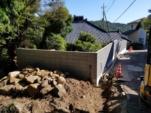 3.4メートル以内毎に控え壁を設けて転倒防止策をしています。
