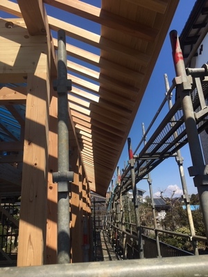 軒板貼り(スギ)を施工しました。