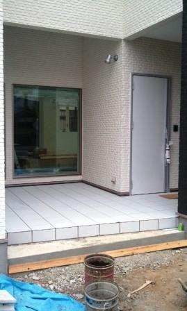 今日はT様邸の玄関ポーチ&テラスのタイル貼り。