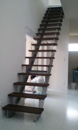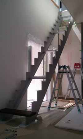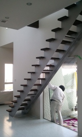 まずは塗装をした鉄骨のササラを慎重に取付けて