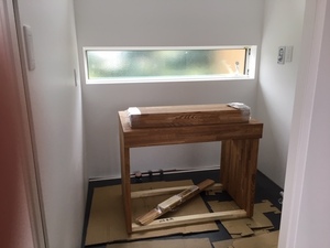 土曜日に塗装した脱衣所鏡を搬入致しました。