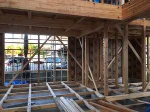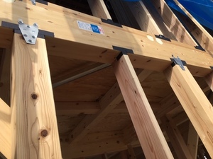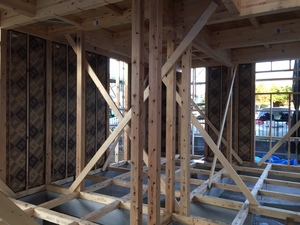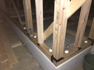 金物取り付け、気密テープ貼り、壁断熱材(スーパーウォール)施工、