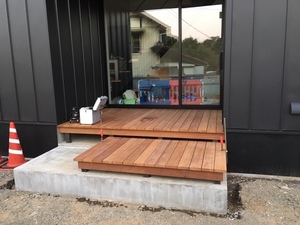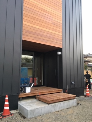 外構工事、玄関ポーチウッドデッキ作成、