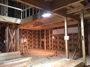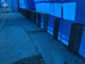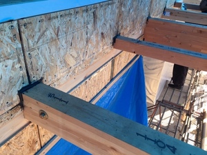 一階入隅取り付け、二階ベランダ防水下地作成を