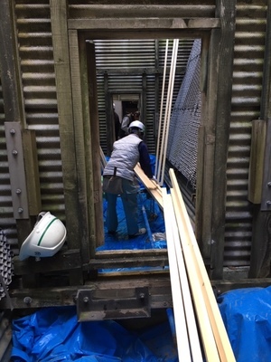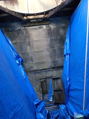 冷却塔の修繕工事の養生をおこないました。