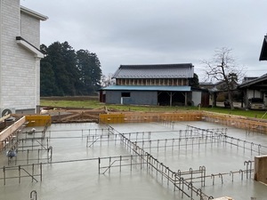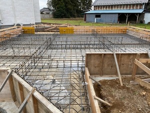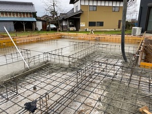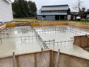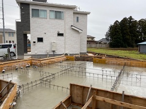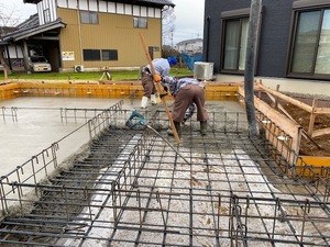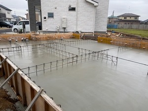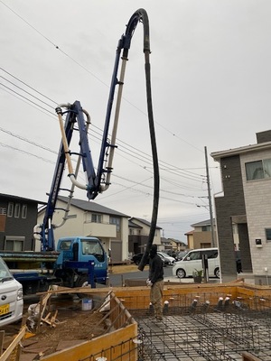 基礎工事にて、基礎耐圧コンクリート打設を