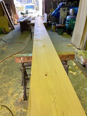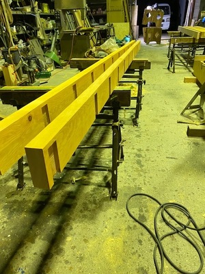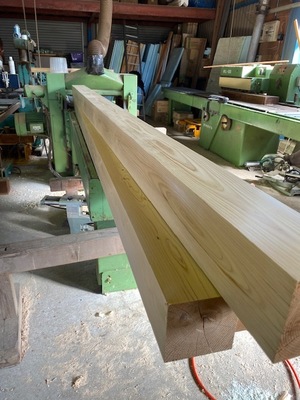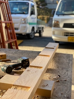 その後、会社作業場にて木材加工を