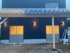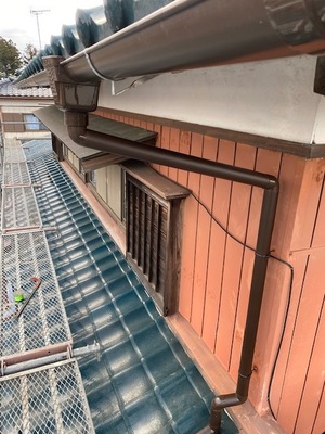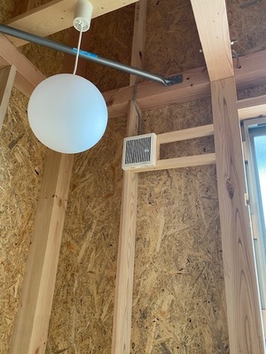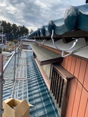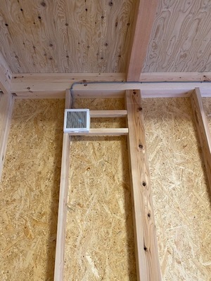 雨樋交換、倉庫室内にて換気扇下地作成を