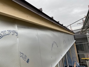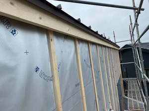 破風板取り付け、外壁下地胴縁取り付けををこないました。