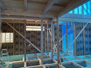 昨日に引き続き、柱周りOSB合板貼り付け。