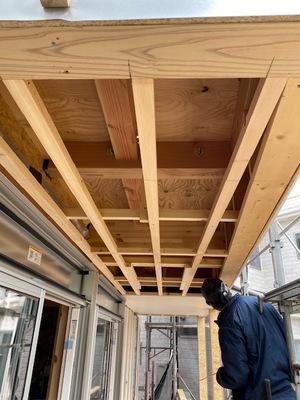 本日は、土浦市K様邸にて新築工事の大工工事にて
