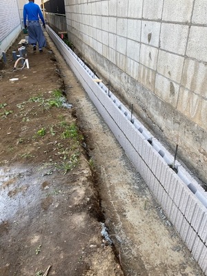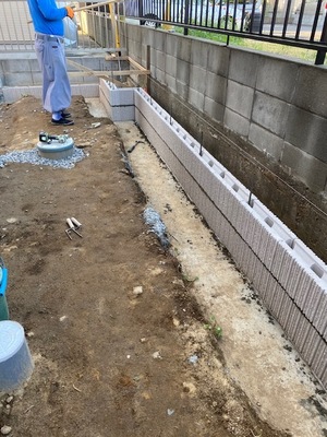 - 04月05日 つくば市S様邸 新築工事 外構工事 ブロック積みをおこないました