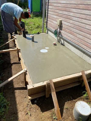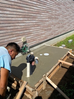 本日は、土浦市K様邸にてエコキュート土間生コン