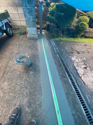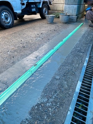その後、つくば市K様邸にて門扉レール生コン打設を