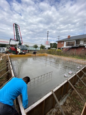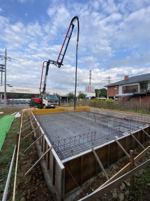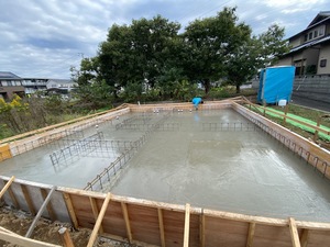 本日は、土浦市N様邸にて新築工事の基礎工事にて