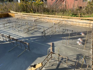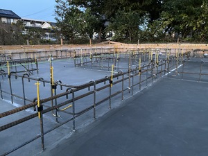 その上に鉄筋を組み、型枠を設置してコンクリートを流し込みます。