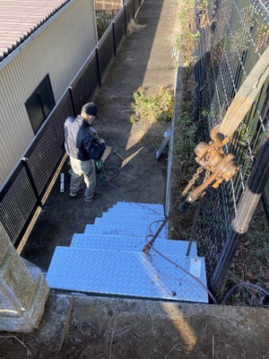 本日は、石岡市H様邸にて階段取り付けを