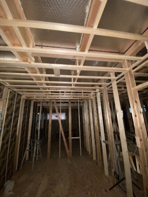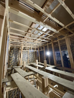 大工工事にて2階天井下地こせを