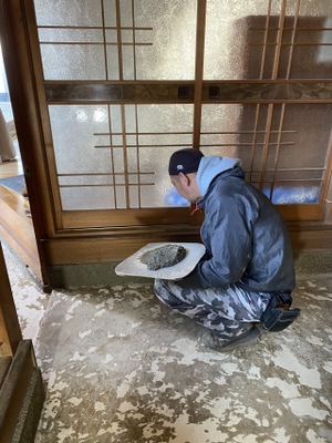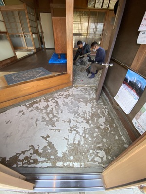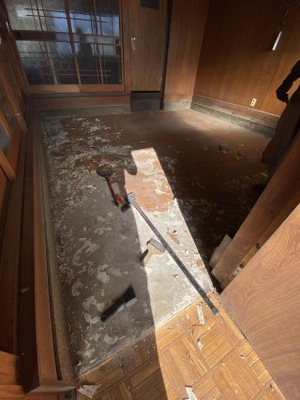 本日は、つくば市I様邸にて玄関クッションフロアはがしを