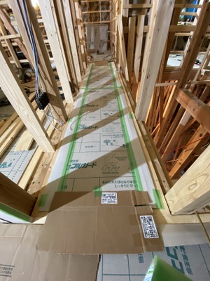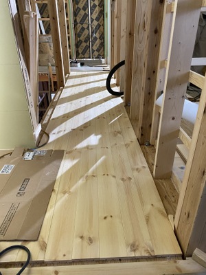 2階廊下フローリング貼り完了。