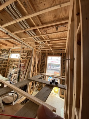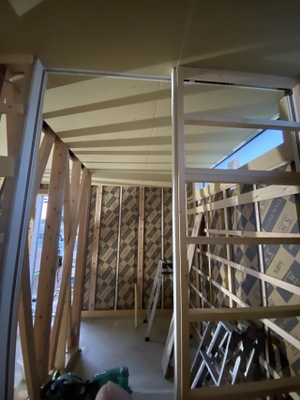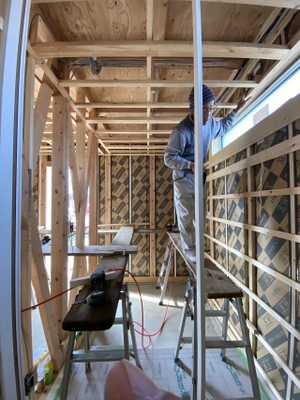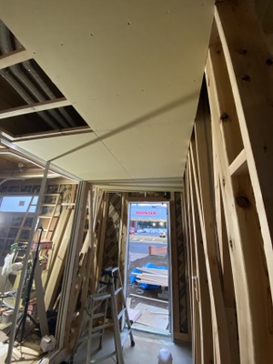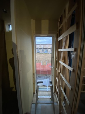 勝手口周りコナー材、石膏ボード貼りを施工。