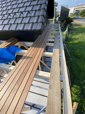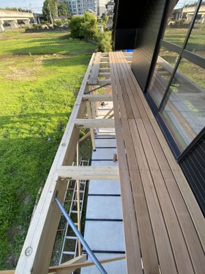 本日は、つくば市R様にてテラス席デッキ作成を
