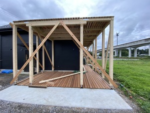 本日は、つくば市R様にてテラス席ウッドデッキ