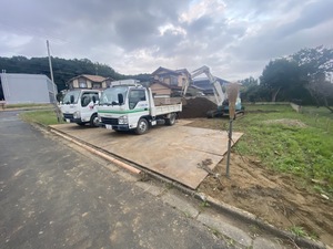 良質土を運搬して、基礎着工時に整地を兼ねていきます。