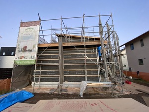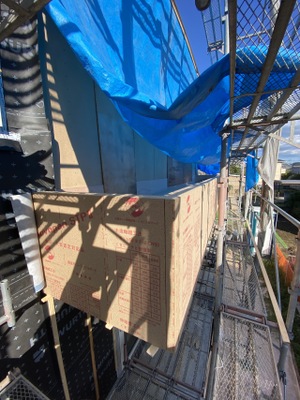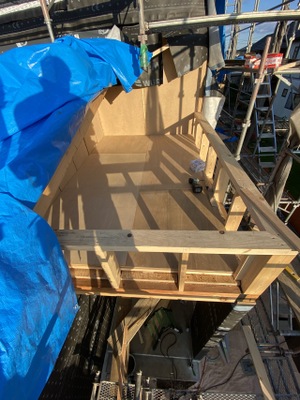 西面ベランダ部、下地を作り28㎜の合板を貼り
