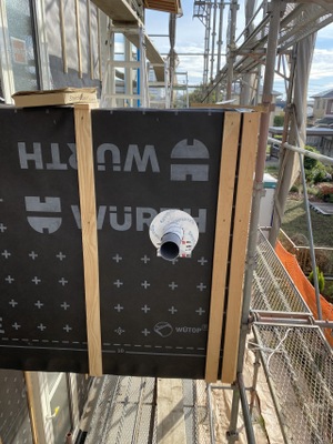 2階ベランダ外配管周りをストレッチガード施工致しました!
