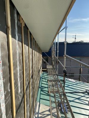 2階軒天貼りをおこないました。