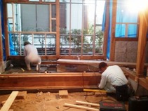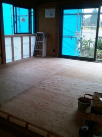 今日は以前和室だった部屋の床下地造りです。隣の和室の敷居に合わせてフロアーを張れるように