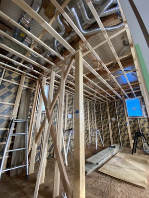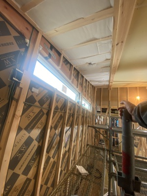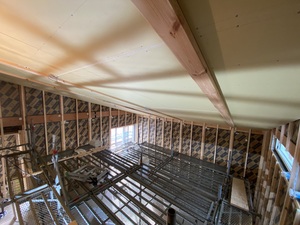 1階趣味部屋勾配天井部石膏ボード貼り完了!