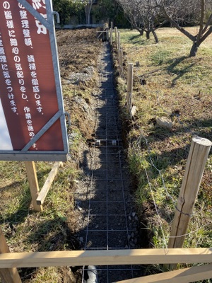 北面も同様、ワイヤーメッシュを敷き