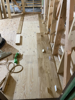 当たり前ですが床合板を掃除機にて綺麗に掃除して