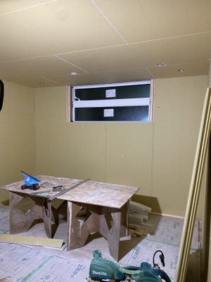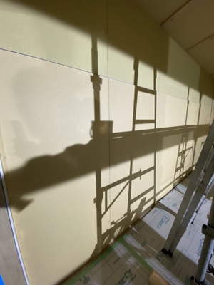 石膏ボードの上に吸音パネル材を貼り2重貼りに