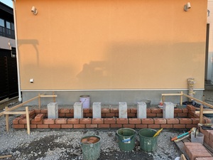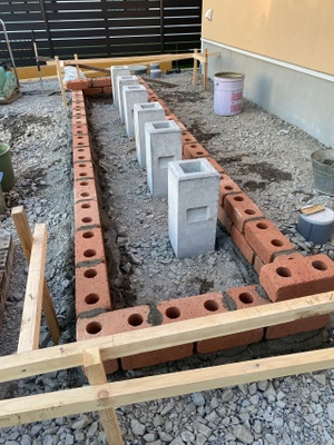 - 04月03日 つくば市S様邸 新築工事 外構工事 ブロック積みをおこないました